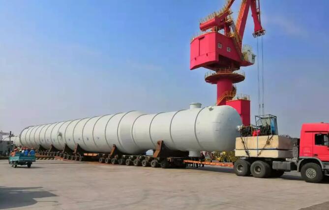 該船貨物是廣利港腹地企業(yè)定制的“脫乙烷塔”和“丙烯丙烷塔”,最大件長(zhǎng)56米、體積1144立方米、件重280噸。貨物自大連旅順港裝船,通過水路聯(lián)運(yùn)的方式,經(jīng)廣利港轉(zhuǎn)運(yùn)至企業(yè),使公路運(yùn)輸?shù)木嚯x縮減至最低,極大降低了企業(yè)的運(yùn)輸成本