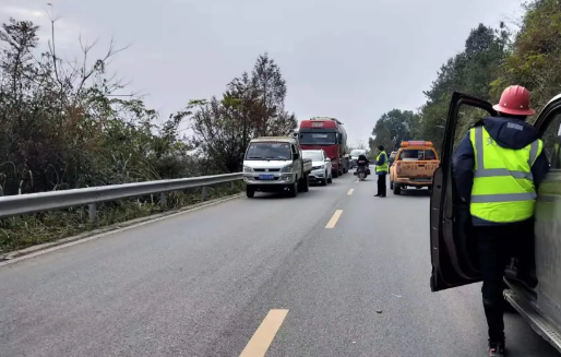 此時開路先鋒攔停了過往車輛,待大件運(yùn)輸車輛安全通過以后才能放行。