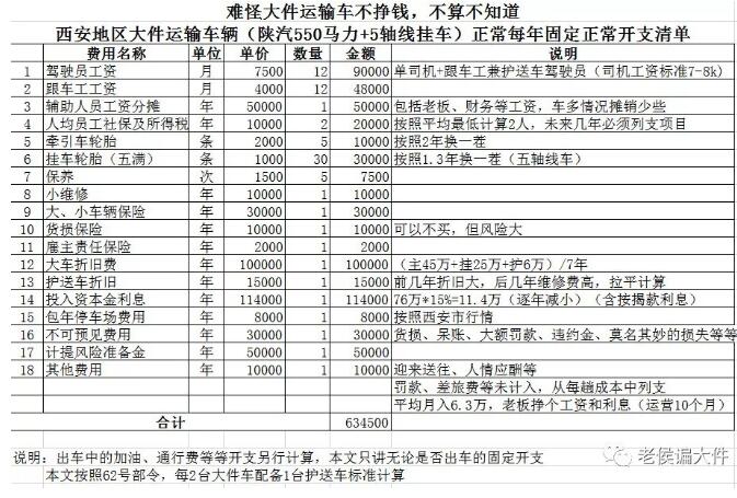 前幾日,有朋友想入行大件運(yùn)輸,筆者以西安地區(qū)五橋滿輪車為例,做了簡(jiǎn)單測(cè)算,結(jié)果讓人倒吸一口涼氣,難怪大件運(yùn)輸車不掙錢,真是不算不知道,原來我們的毛利潤(rùn)跑到這里去了。