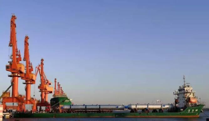 該公司結合駁船運輸及作業(yè)特點,利用牽引車將平板車上的3件設備從駁船上卸至碼頭,然后將另外2件設備移至駁船上,一次性成功作業(yè)5件化工反應器罐體,這是營口港區(qū)首次實現(xiàn)大件設備“滾裝滾卸”,也創(chuàng)下了單船裝卸大件數(shù)量新紀錄。