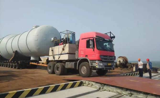 該船貨物是廣利港腹地企業(yè)定制的“脫乙烷塔”和“丙烯丙烷塔”,最大件長(zhǎng)56米、體積1144立方米、件重280噸。貨物自大連旅順港裝船,通過水路聯(lián)運(yùn)的方式,經(jīng)廣利港轉(zhuǎn)運(yùn)至企業(yè),使公路運(yùn)輸?shù)木嚯x縮減至最低,極大降低了企業(yè)的運(yùn)輸成本
