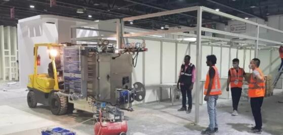 上圖為迪拜美容展叉車作業(yè)圖片,我們可以根據(jù)客戶要求將大型設(shè)備移動(dòng)擺放到攤位的指定位置。