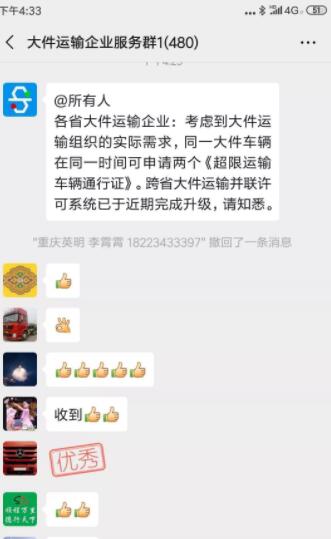 考慮到大件運(yùn)輸組織的實(shí)際需求,同一大件車(chē)輛在同一時(shí)間可申請(qǐng)兩個(gè)《超限運(yùn)輸車(chē)輛通行證》??缡〈蠹\(yùn)輸并聯(lián)許可系統(tǒng)已于近期完成升級(jí),請(qǐng)知悉。